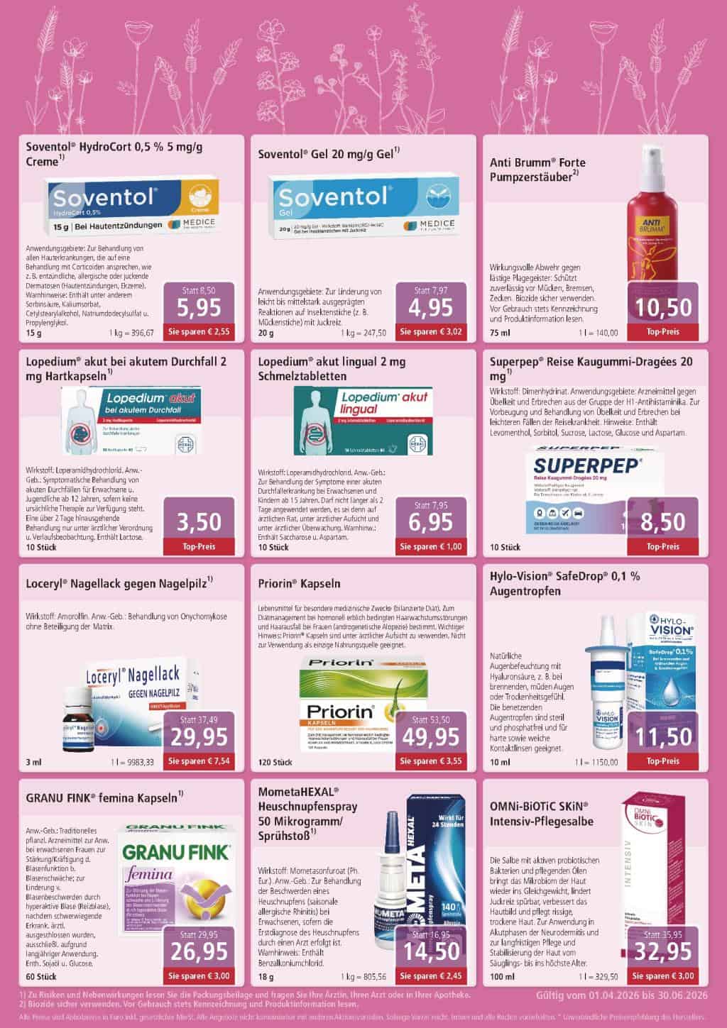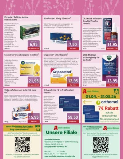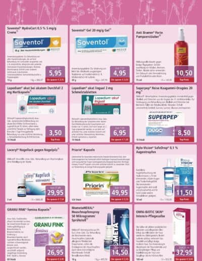 Bei uns vor Ort finden Sie dauerhaft günstige Preise auf eine große Auswahl an Arzneimitteln, Kosmetik- und Pflegeprodukten – ganz ohne Kompromisse bei der Qualität.